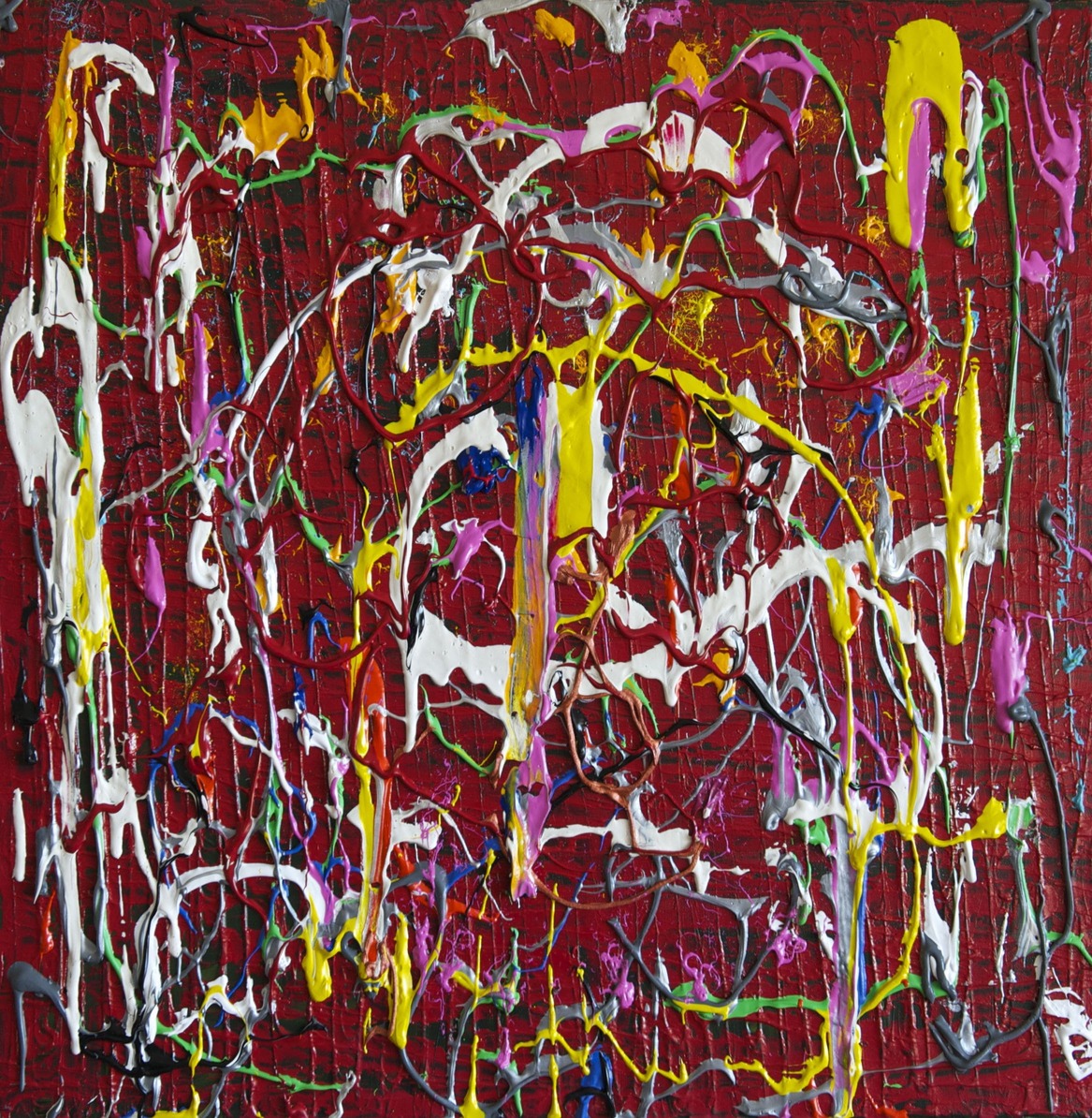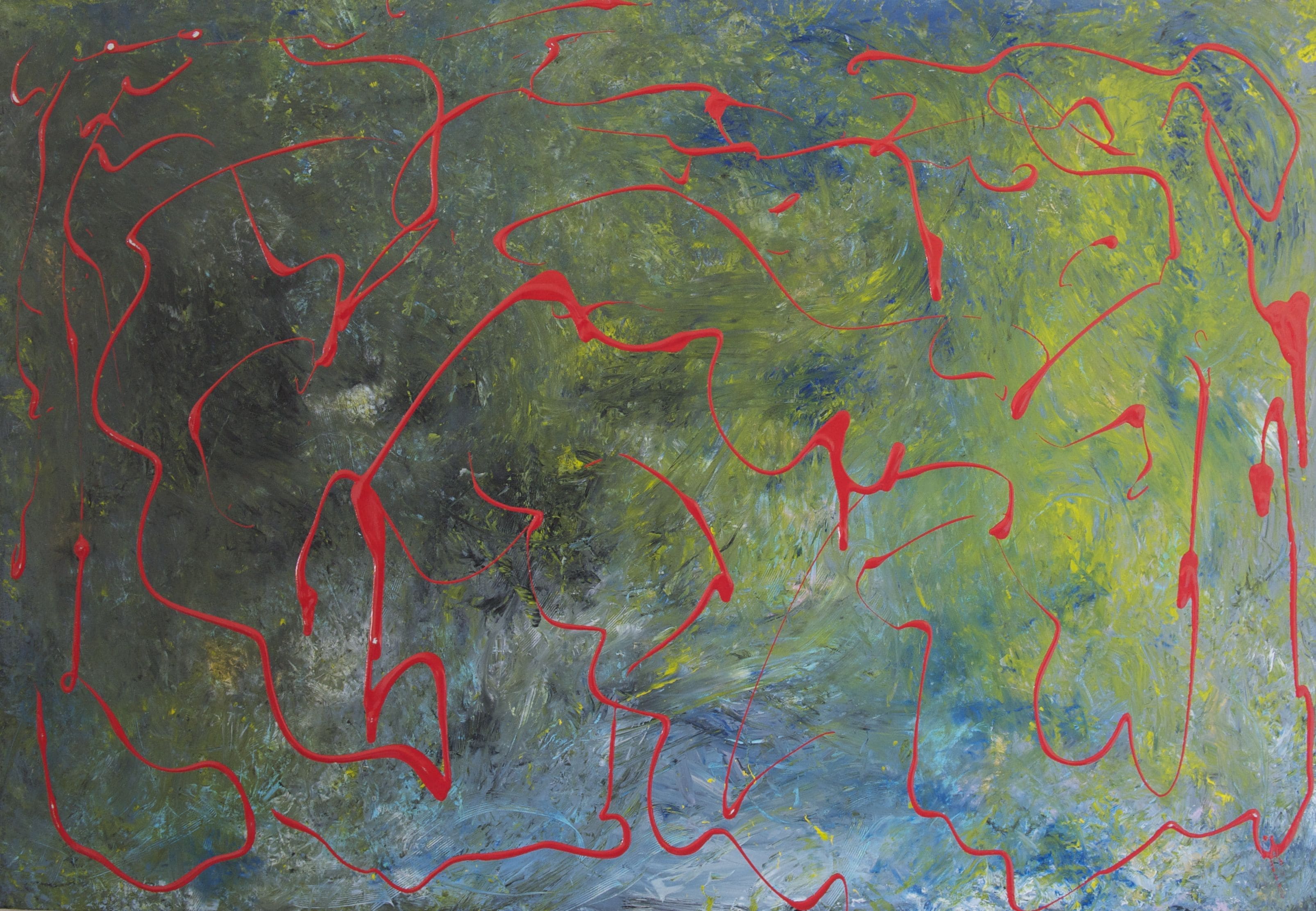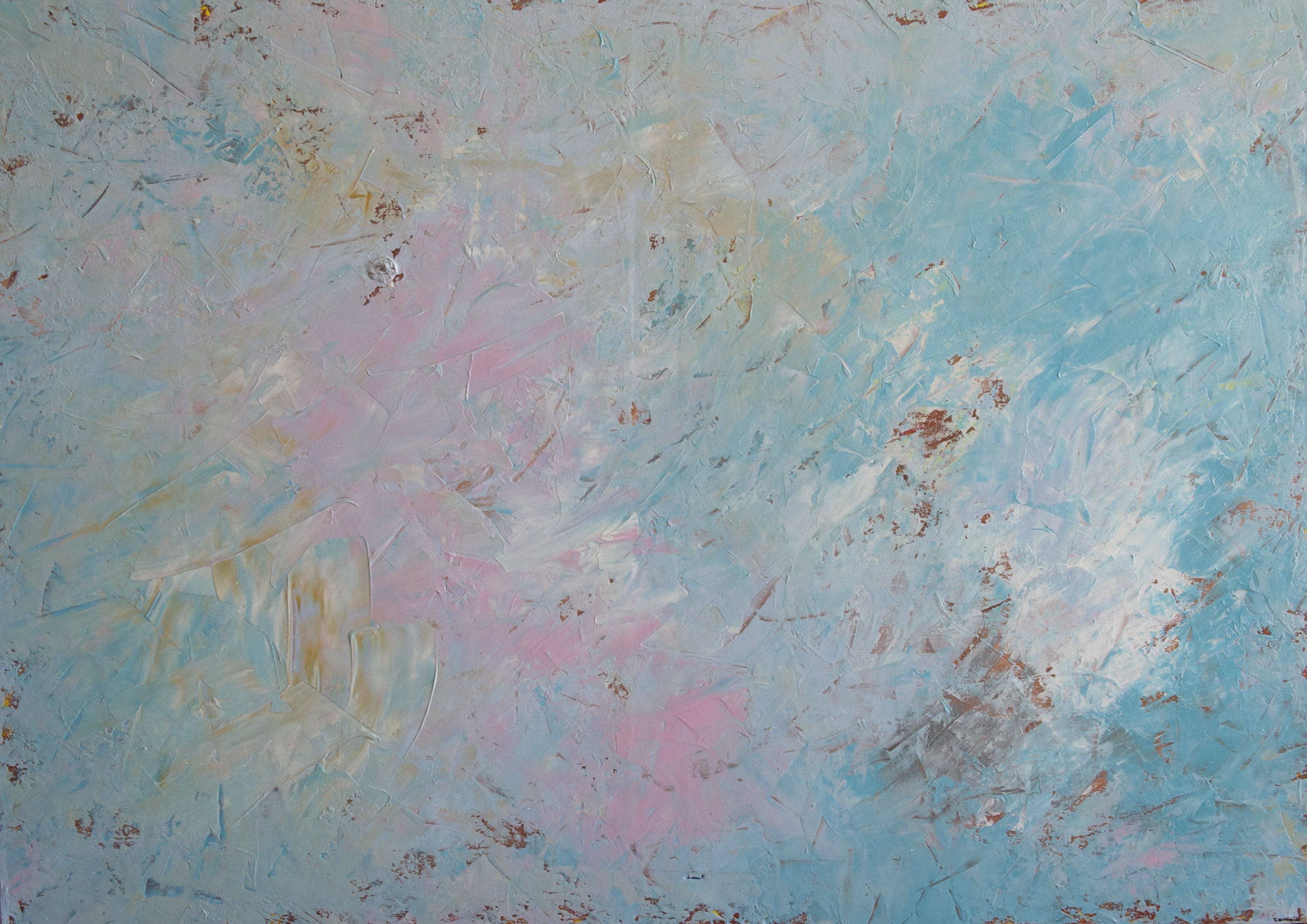 La peinture s'est imposée comme un nouveau langage. Son travail s'inscrit dans une exploration constante de l'abstraction — traduire l'invisible en visible, faire vibrer la couleur au-delà de sa simple présence. L'acrylique permet une grande liberté : projections, coulures, reprises, effacements. La couleur n'est pas décorative — elle structure l'espace. Les contrastes et les zones de tension organisent la composition.