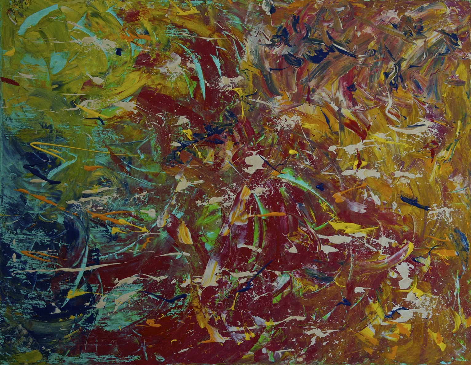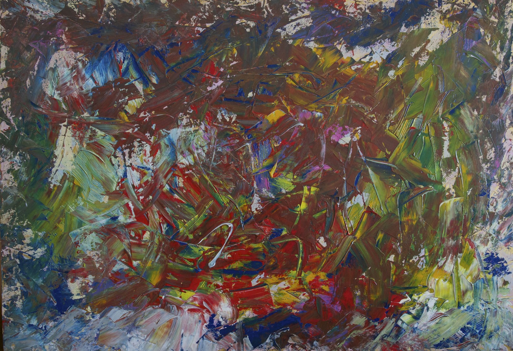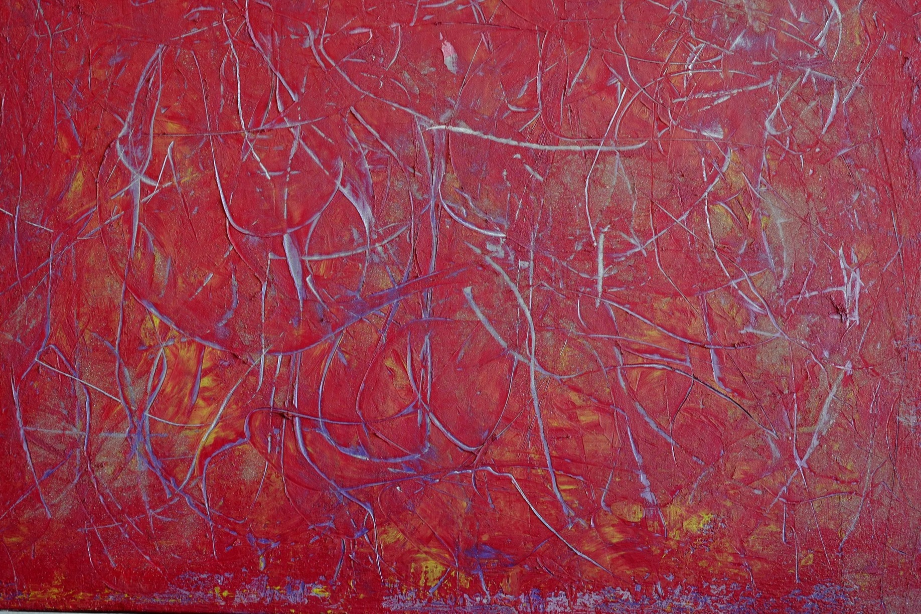La peinture s'est imposée comme un nouveau langage. Son travail s'inscrit dans une exploration constante de l'abstraction — traduire l'invisible en visible, faire vibrer la couleur au-delà de sa simple présence. L'acrylique permet une grande liberté : projections, coulures, reprises, effacements. La couleur n'est pas décorative — elle structure l'espace. Les contrastes et les zones de tension organisent la composition.